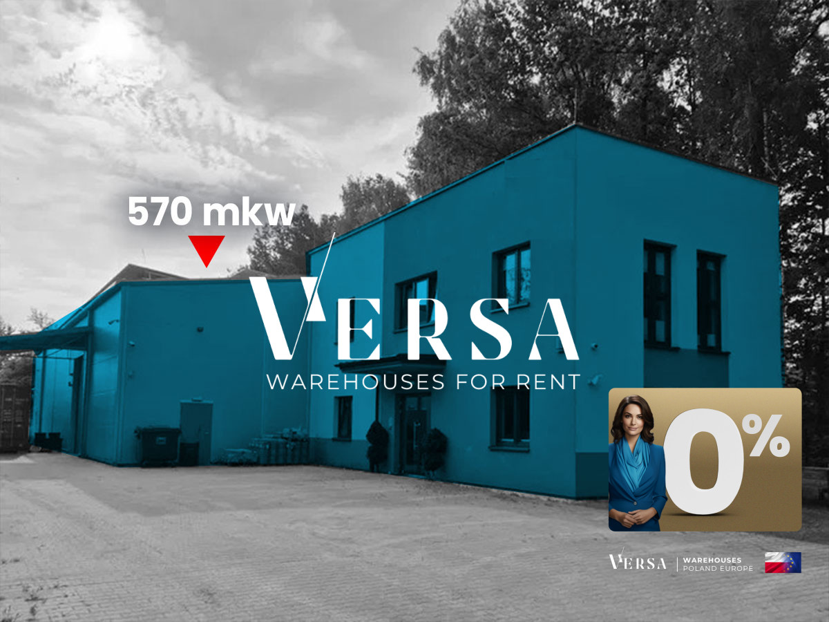 A warehouse and office space with a total area of 570 sq m is available for rent, located approximately 5 km from the A2 motorway junction.