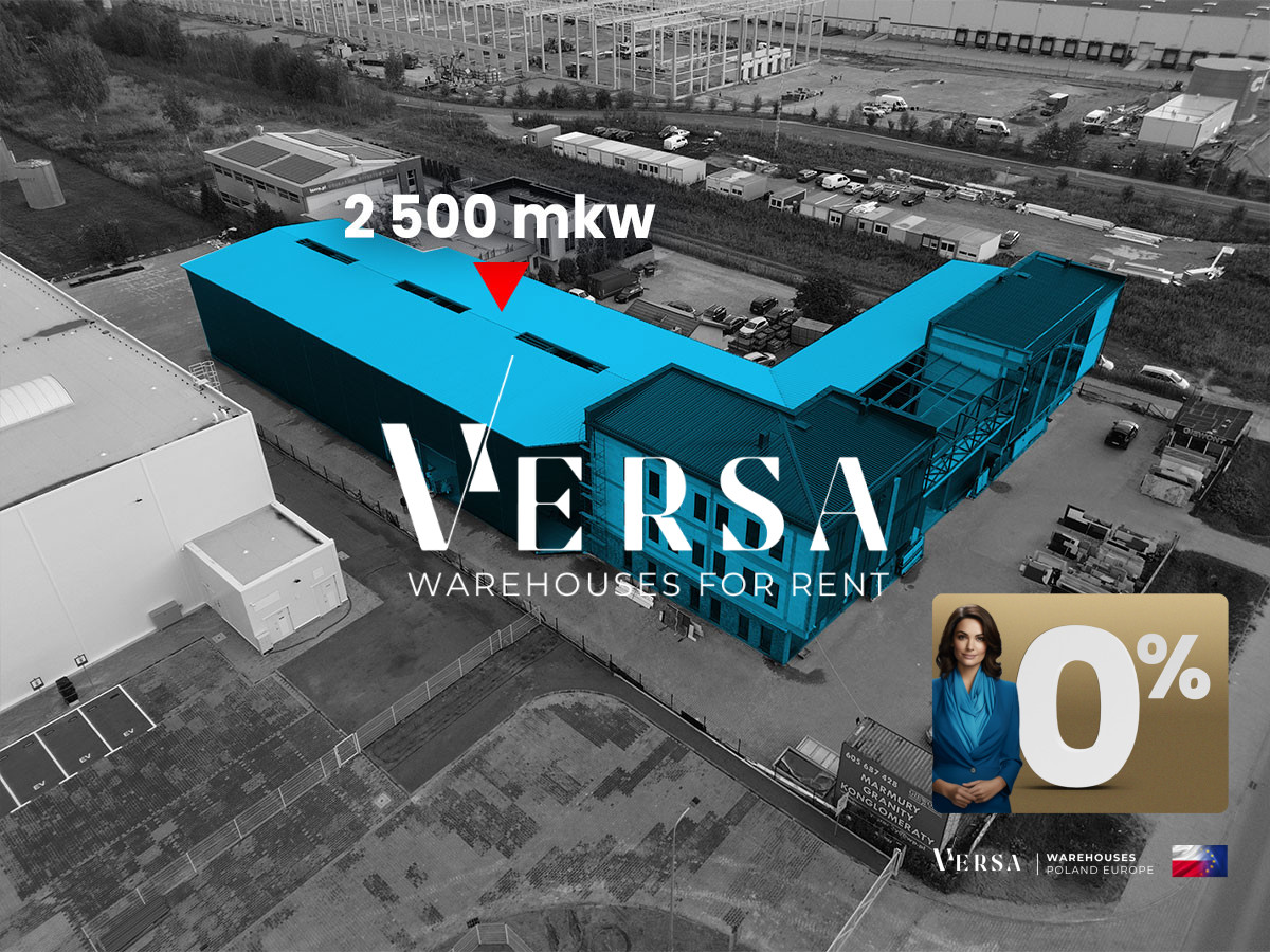 Specifications and amenities: Retail/service/office space: 900 sq m; Warehouse space: 1,600 sq m; Warehouse height at the lowest point: 10 m Gable height: 12.5 m; Access to the warehouse via three ground-level gates measuring 4 x 4.5 m + two passenger entrances; Internal circulation between the warehouse and office; Gas heating (radiant heaters); Daylight through a wide skylight in the roof; Three access gates to the facility; Air-conditioned offices with high-quality finishes (granite, sintered quartz); Ventilated sintered façade with large glass windows; The site is fully paved with paving stones. Designated use: office, storage, services, retail. The property is ideal for business headquarters. Rent: PLN 110,000 net plus utility bills: electricity, gas, and water.