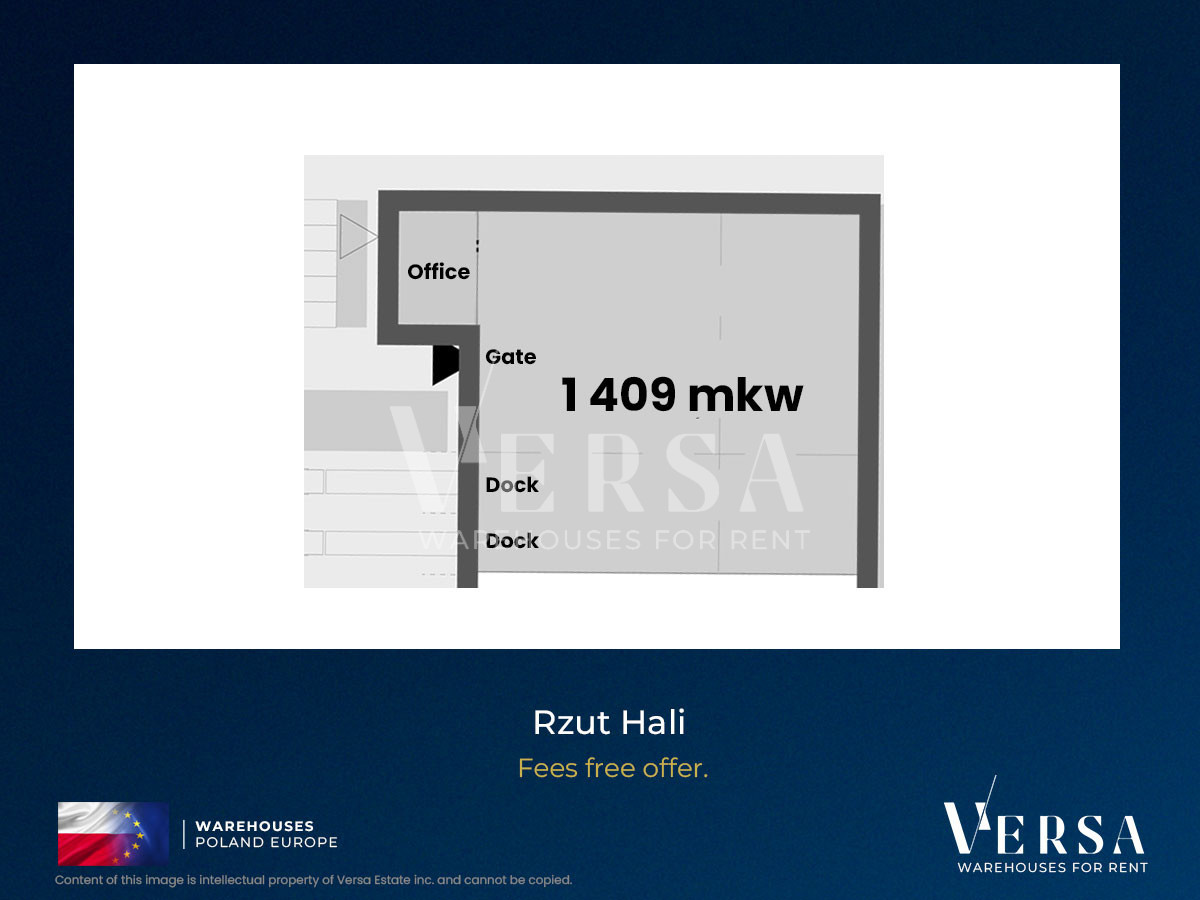 ENGFor rent a warehouse hall with an area of 1409 sqm. S7 Nadma route junction.