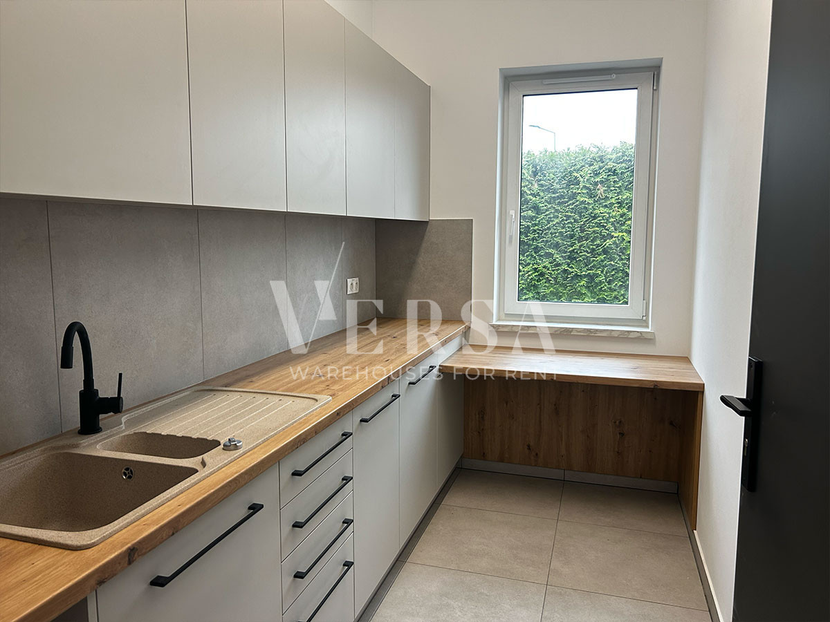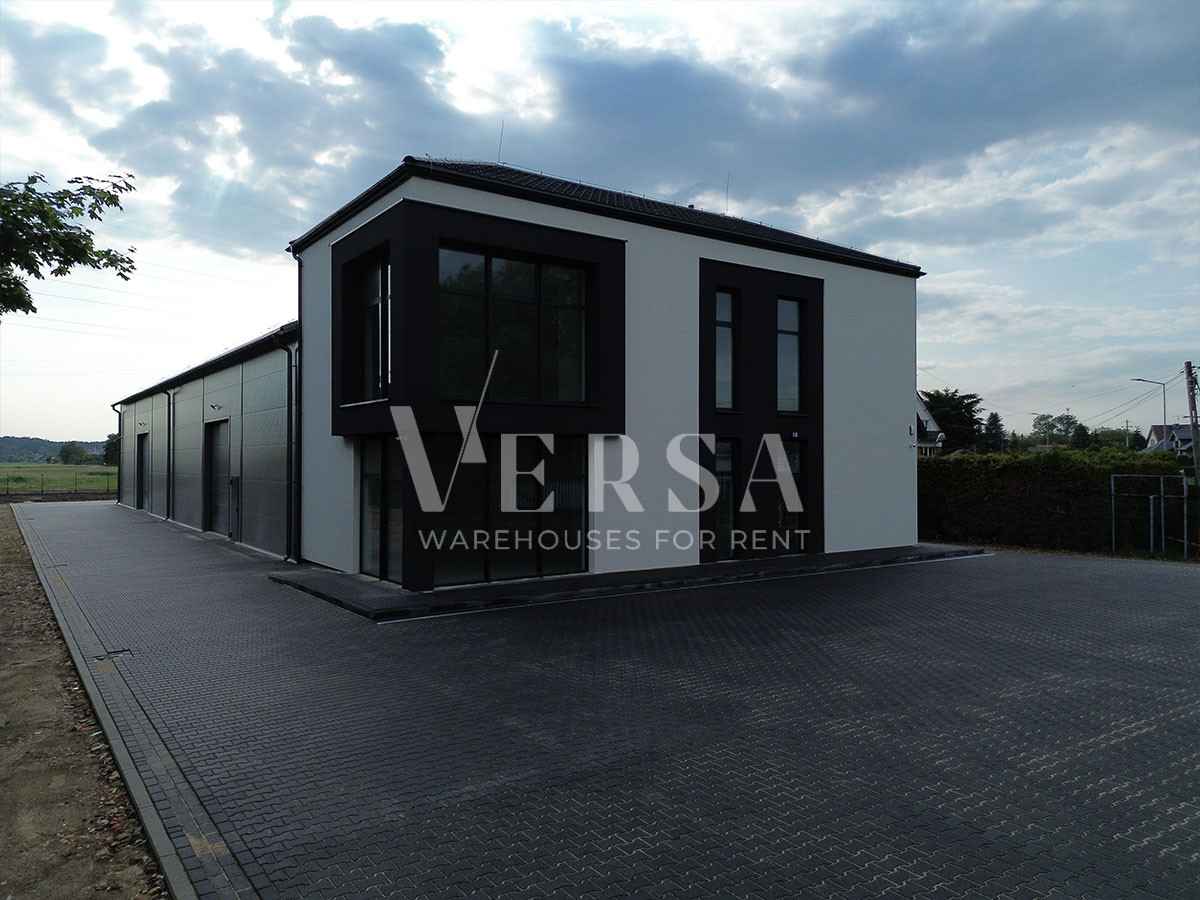 ENG:Warehouse and production hall for rent. Hall area 550 m2 + office space with a higher standard of 160 m2 on two levels. Technical parameters and equipment: hall area 550 m2, storage height 9 m, two gates 0 for TIR, columnless, dust-free floor with a load capacity of 5 T/m2, smoke detectors, electronic temperature control, heat pump, monitoring, LED lighting, daylight illumination through skylights. large maneuvering area, social part separated from the office part, hall in passive construction with low heat loss, access DK61. Contact (ENG) +48 512 222 884