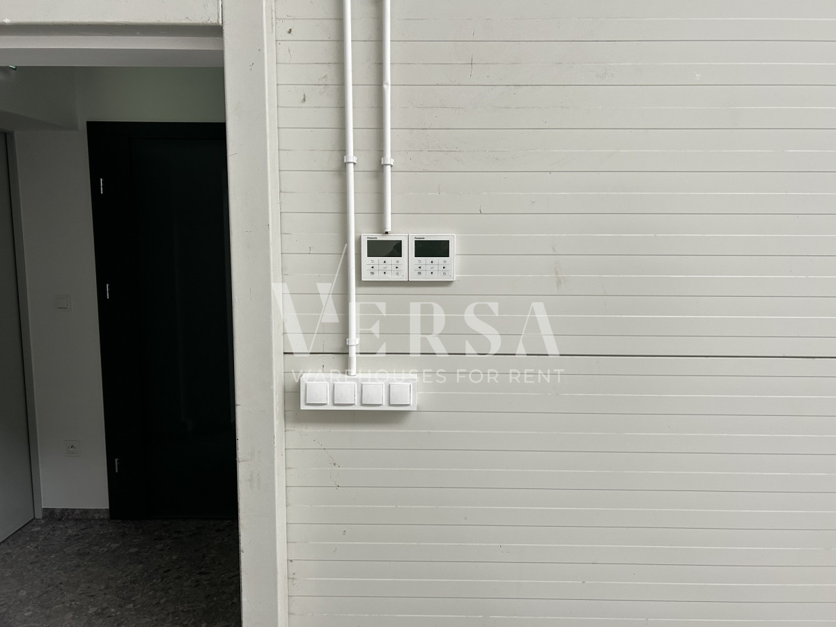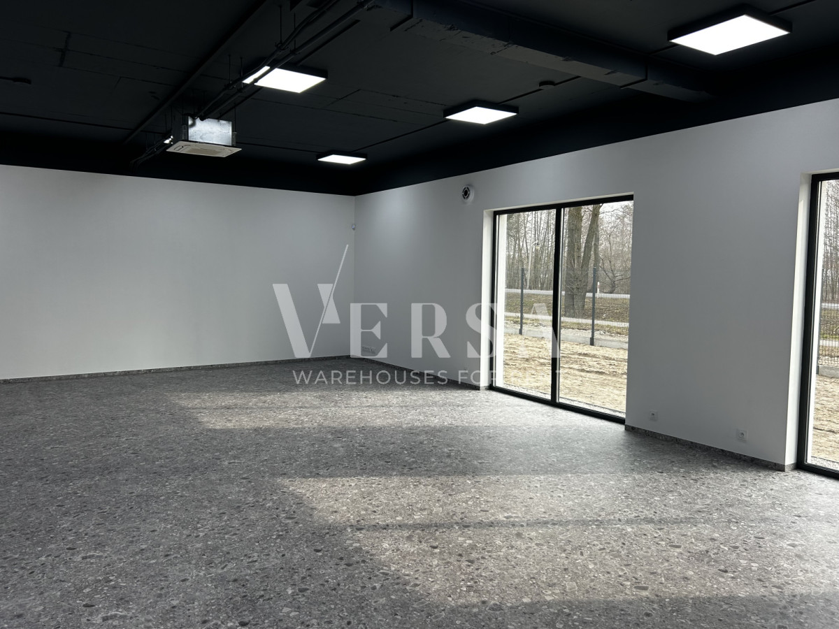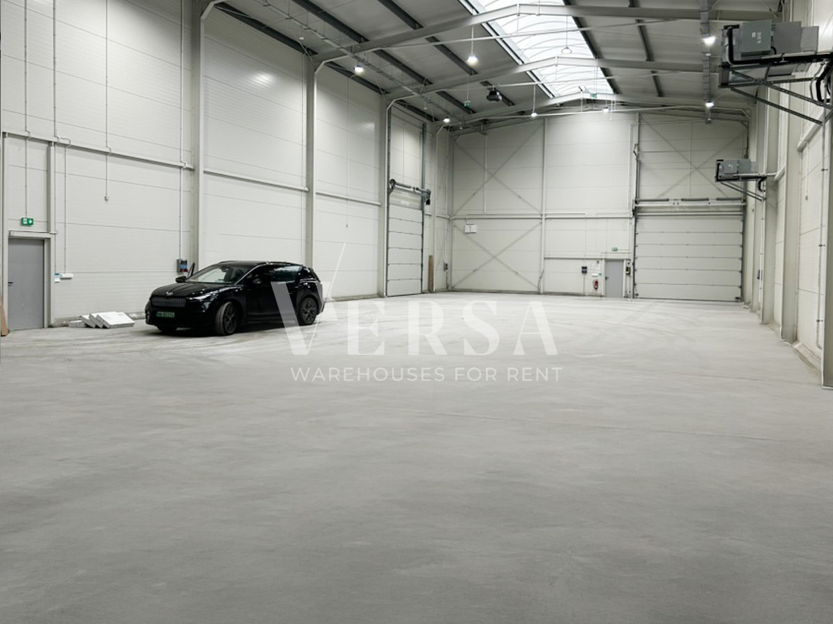 Warehouse and production hall for rent. Hall area 630 m2 + office space with a higher standard of 280 m2 on two levels. Technical parameters and equipment: hall area 630 m2, storage height 9.3 m, three gates 0 for TIR, columnless, dust-free floor with a load capacity of 8 T/m2, smoke detectors, electronic temperature control, heat pump, monitoring, LED lighting, daylight illumination through skylights. large maneuvering area, social part separated from the office part, hall in passive construction with low heat loss, access DK61.