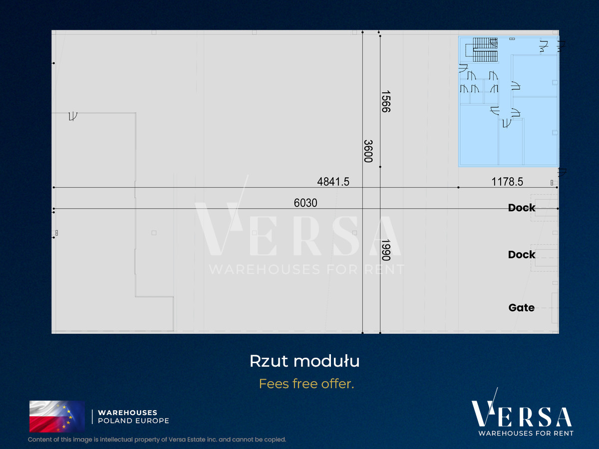Podany czynsz liczony jest według stawki efektywnej, bez wliczonej powierzchni biurowej. Hala gotowa do wynajęcia od zaraz.