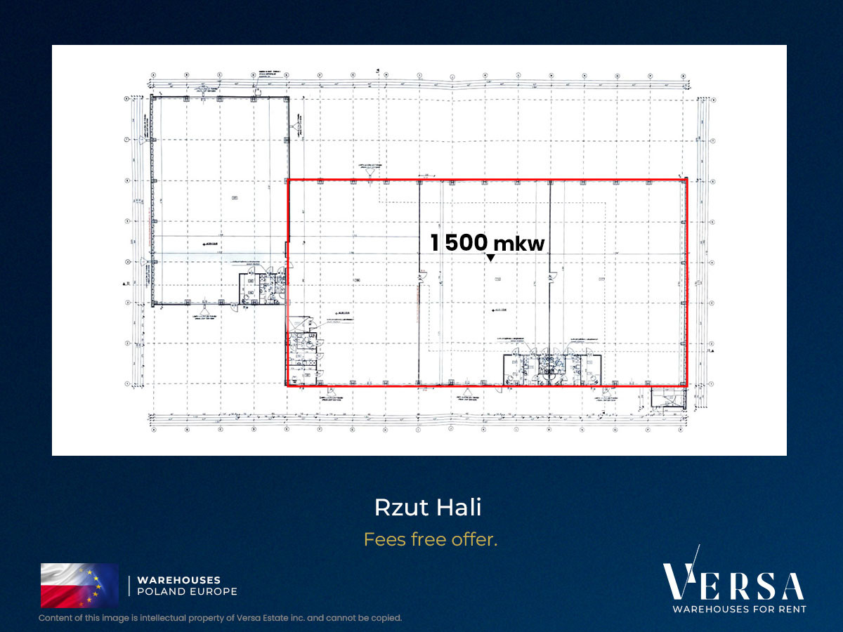 Specifications and equipment: Total facility area: 1,500 sq m, Staff/office area: 50 sq m, Plot area: 4,335 sq m, 3 ground-level access doors, Gas heating, Floor load capacity: 5 t/sq m, Structure height: 7.5 m, Minimum area 500 sq m, Maximum area 2000 sqm, Power allocation: 120 kW, Suitable for light manufacturing and service operations, Rent: PLN 52,500 net, Additional fees: gas, electricity, water, sewage, and internet, as measured by meters, The building will be available from February 1, 2026.