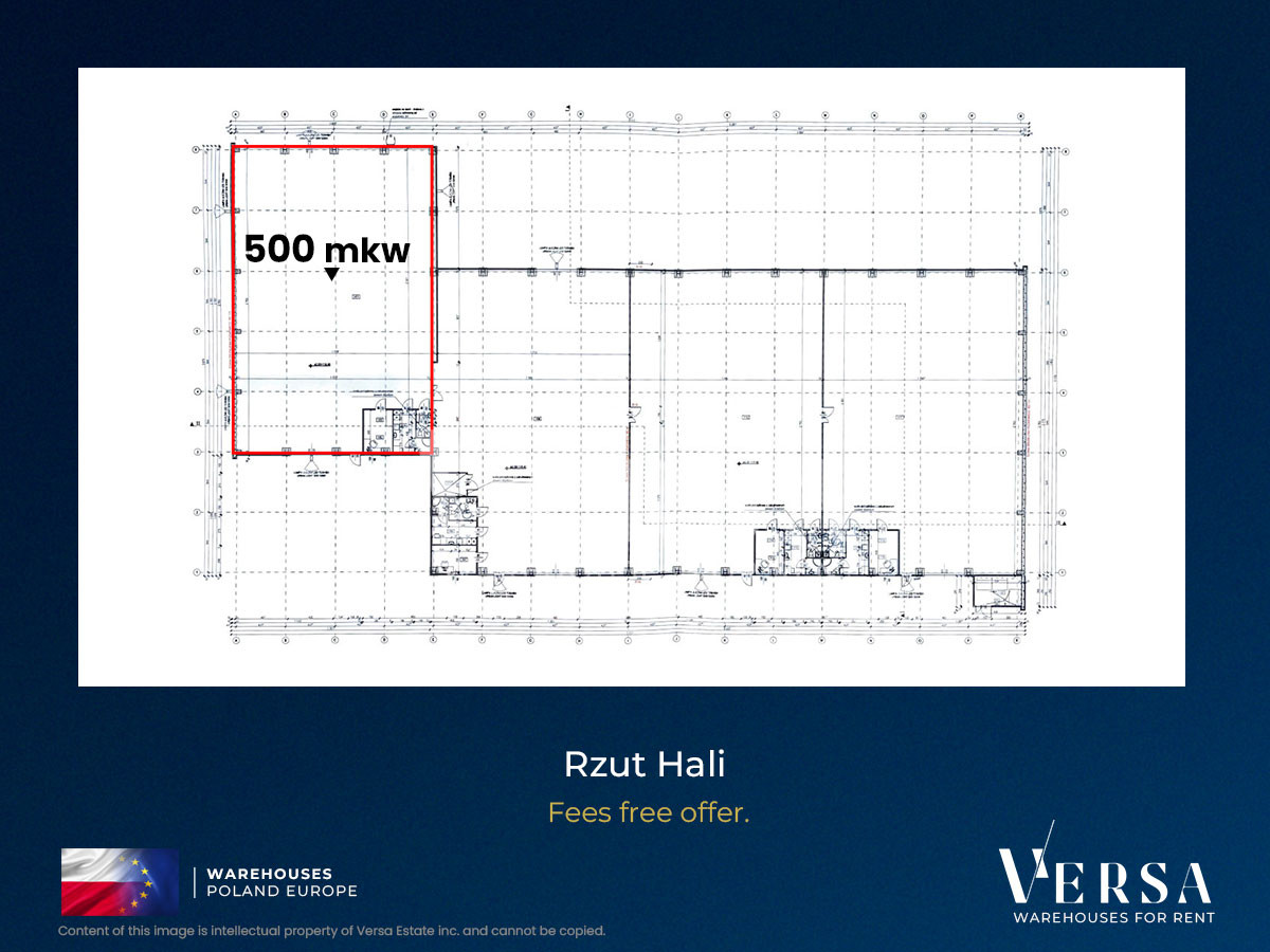 Specifications and equipment: Total facility area: 500 sq m, Staff/office area: 50 sq m, Plot area: 4,335 sq m, 3 ground-level access doors, Gas heating, Floor load capacity: 5 t/sq m, Structure height: 7.5 m, Minimum area 500 sq m, Maximum area 2000 sqm, Power allocation: 120 kW, Suitable for light manufacturing and service operations, Rent: PLN 17,500 net, Additional fees: gas, electricity, water, sewage, and internet, as measured by meters, The building will be available from February 1, 2026.