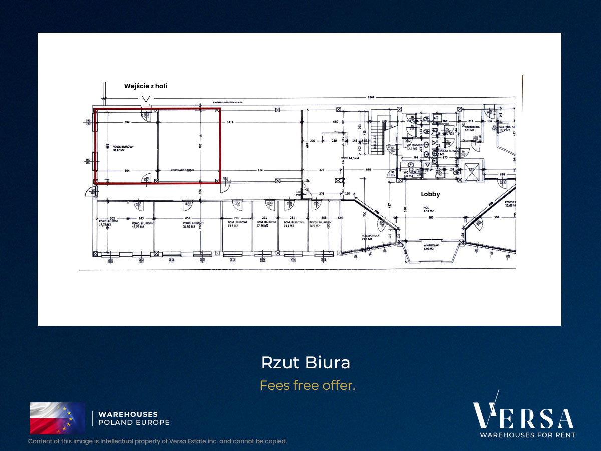 - Możliwość wynajęcia większej powierzchni do 1800 mkw oraz powierzchni biurowej.