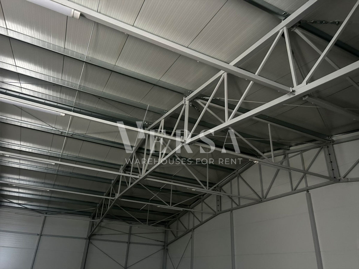 Features and equipment: 400 sq m warehouse. Height: 4,5 - 7 m. Dust-free flooring, load capacity: 5 tons/sq m. 1 Hörmann hydraulic gate (4.25 x 4.00 m) from ground level. Roof skylights, mechanical and natural ventilation. Smoke detectors, hydrants (internal/external), plus a fire tank. Unheated warehouse. Access control. Fiber optics. Fenced area, two entrance gates, a maneuvering area, and parking for 10 cars. 24/7 monitoring. Paving stone surface. Utilities: electricity, gas, water, and municipal sewer.