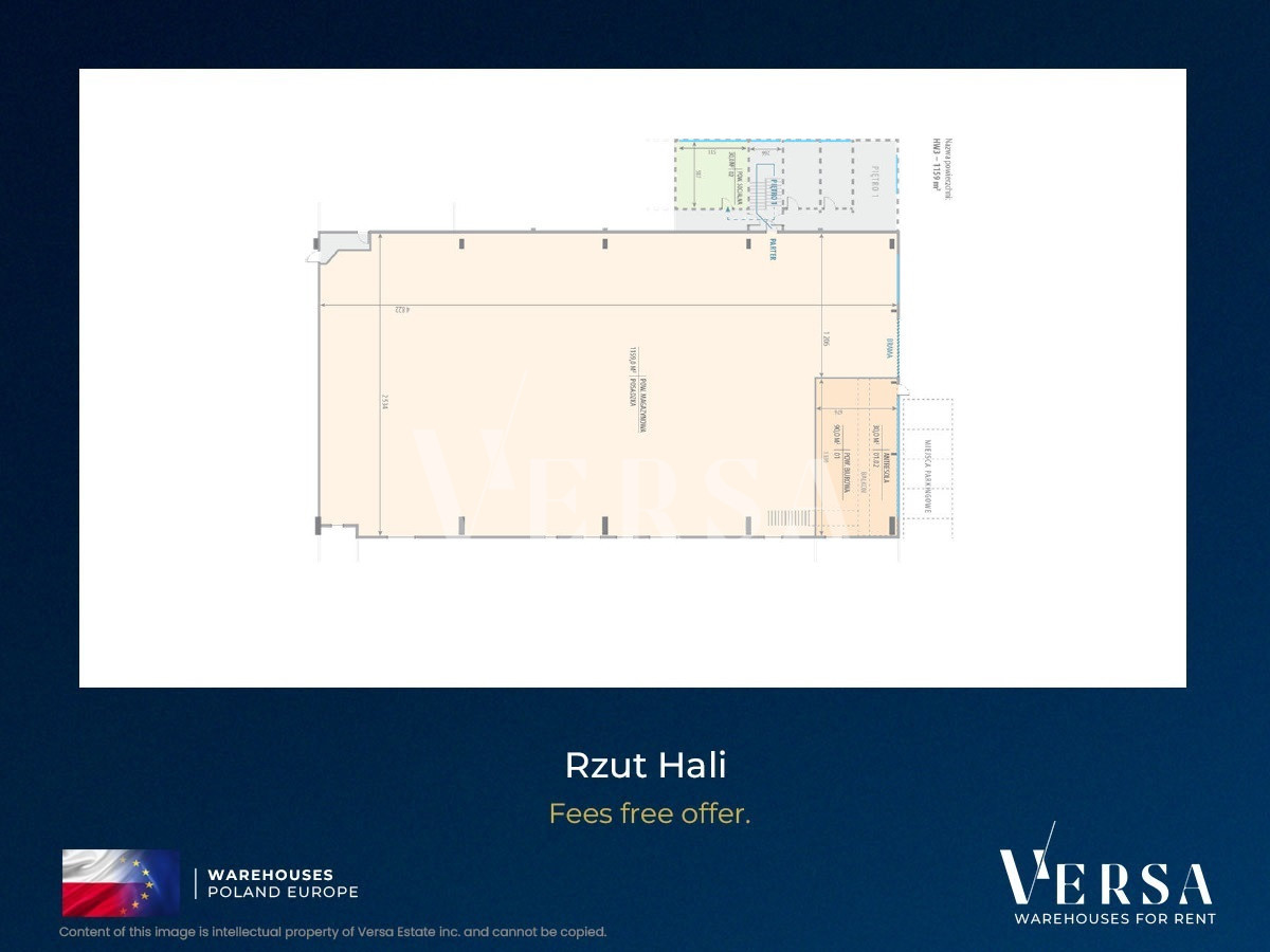Minimum lease term: 5 years, Rental rate for the hall: €5.9/sq m, for the office/staff area: €11/sq m, service fee: 11 PLN/sq m, common area factor: 5%, parking space: €25/sq m