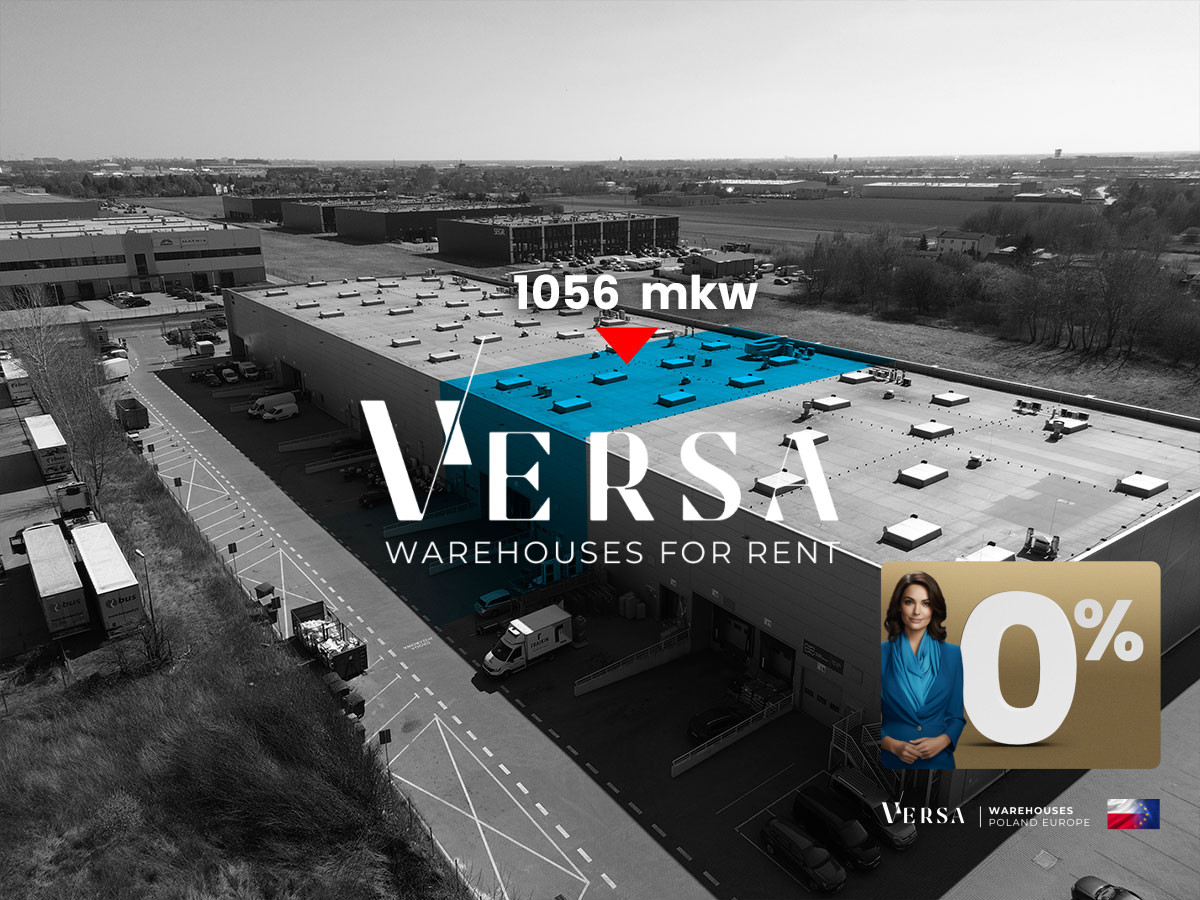 For rent a 1055 sqm warehouse plus 250 sqm office space, 284 sqm mezzanine, 1590 sqm in total, located in a modern logistics park in Warsaw's Okęcie district.