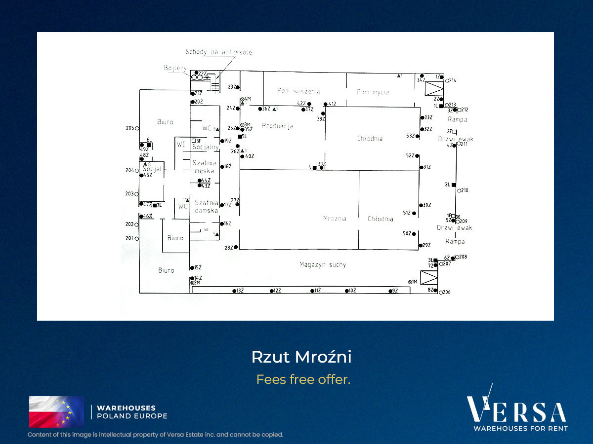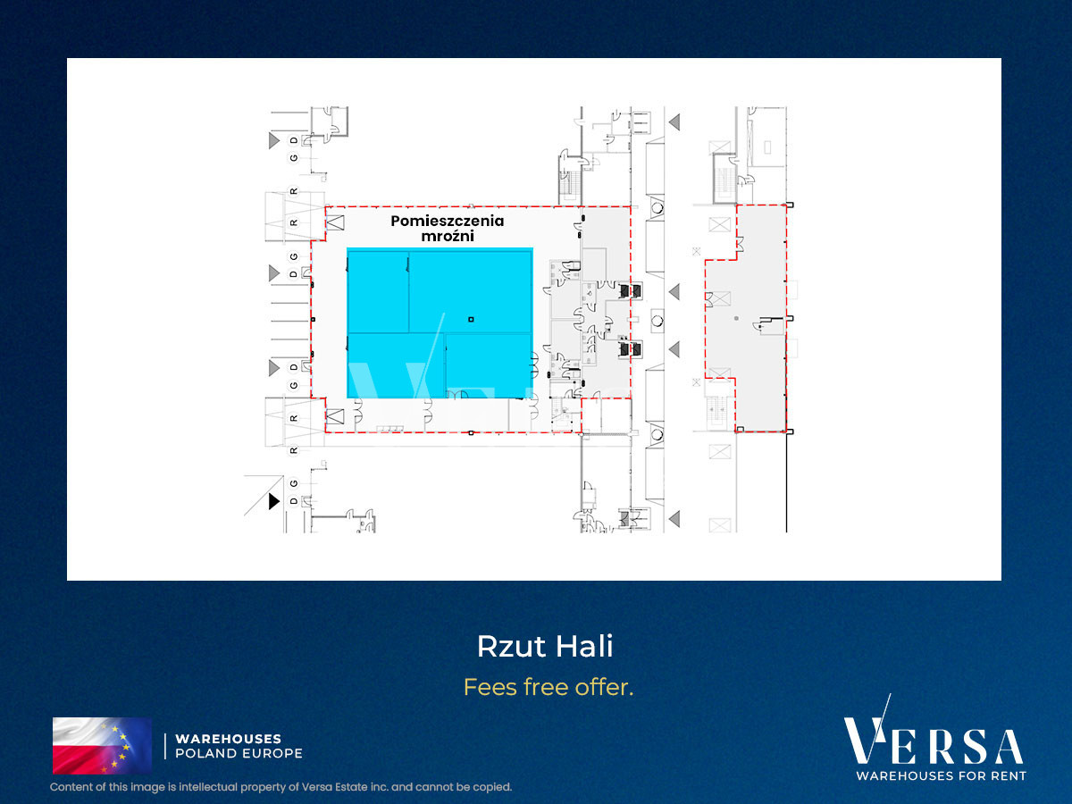 Warehouse rent at a price of 6.5 EUR/sqm, for an office 12 EUR/sqm. The rent includes a service fee of 10.20 PLN/sqm, the cost of a parking space 27.5 EUR/sqm. Two docks and two gates 0. The hall is equipped with a freezer adapted to the needs of food products. GENERAL DESCRIPTION: The logistics park is located a short distance from Chopin Airport and important communication hubs. Thanks to the modular layout, you can choose any (size/shape/configuration) of warehouse space for rent. By choosing an offer in the logistics park, you will gain comfortable and safe warehouse space in Warsaw. AS STANDARD: dust-free floors with a permissible load of 3 T/m2 and docks with a fixed, hydraulic ramp and "Drive-in doors" for various types of cars. Thanks to this, communication between the warehouse and the maneuvering area is effective and allows for increased efficiency of work organization. Fire protection system (sprinklers, hydrants, smoke flaps); High work comfort thanks to excellent access to natural light; Suspended ceilings with integrated lighting system and smoke detectors. Fenced area, with security, equipped with maneuvering areas and a large parking lot for employees and guests. The hall is available immediately after the conclusion of the Lease Agreement.