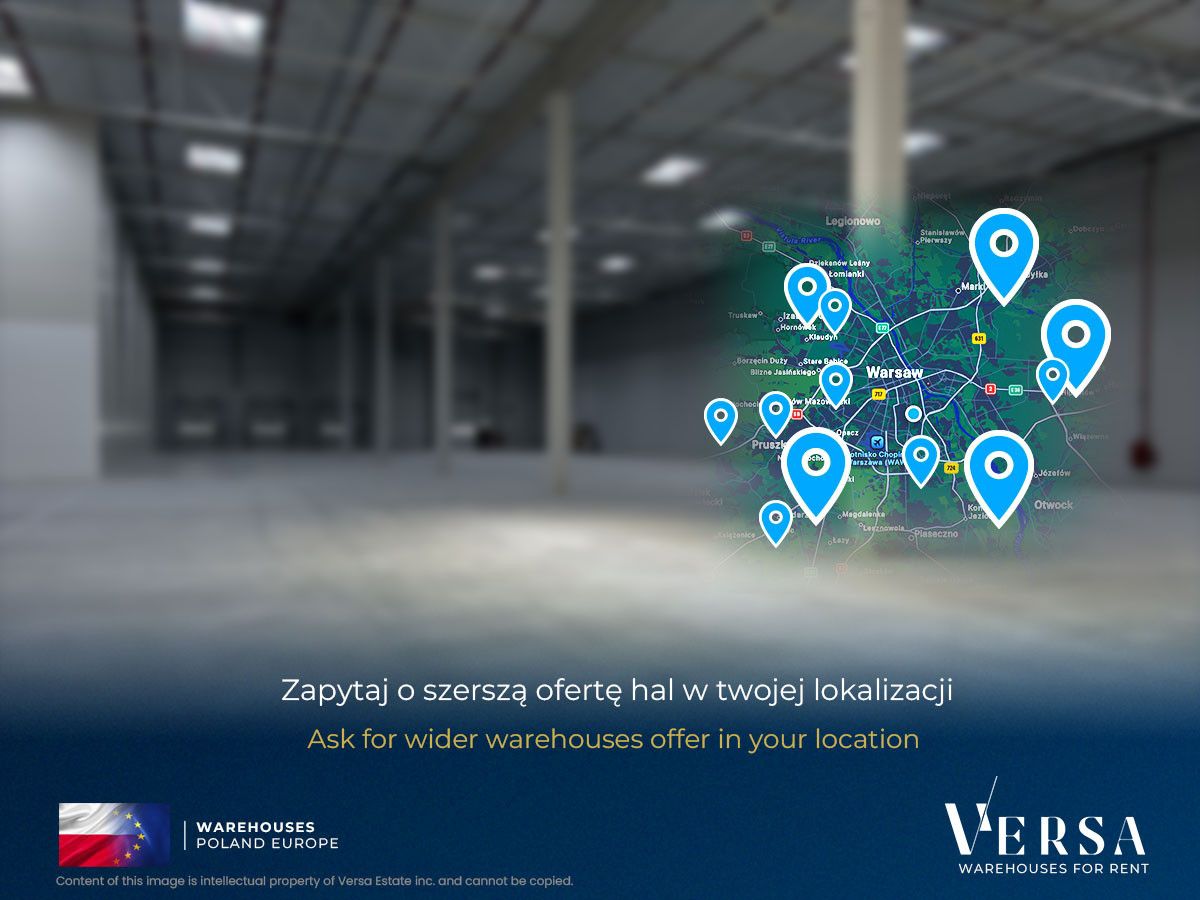 4,700 sq m of warehouse space for rent, plus approximately 250 sq m of office and staff space, located in a modern Logistics Park near Janki. The Logistics Park offers ultra-modern warehouse space just a 3-minute drive from Warsaw. The center is located directly adjacent to the S8 expressway junction, guaranteeing efficient access to the capital city center, as well as uninterrupted transport to Łódź, Wrocław, Kraków, and Katowice. The passenger and cargo terminals at Chopin Airport are just a 15-minute drive from the Logistics Park.