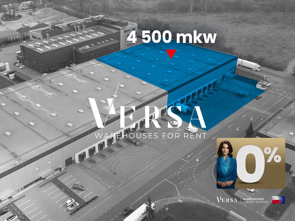 A 4,500 sq m warehouse facility is available for rent in a modern logistics park in Wawrzyszew, near DK92 route.