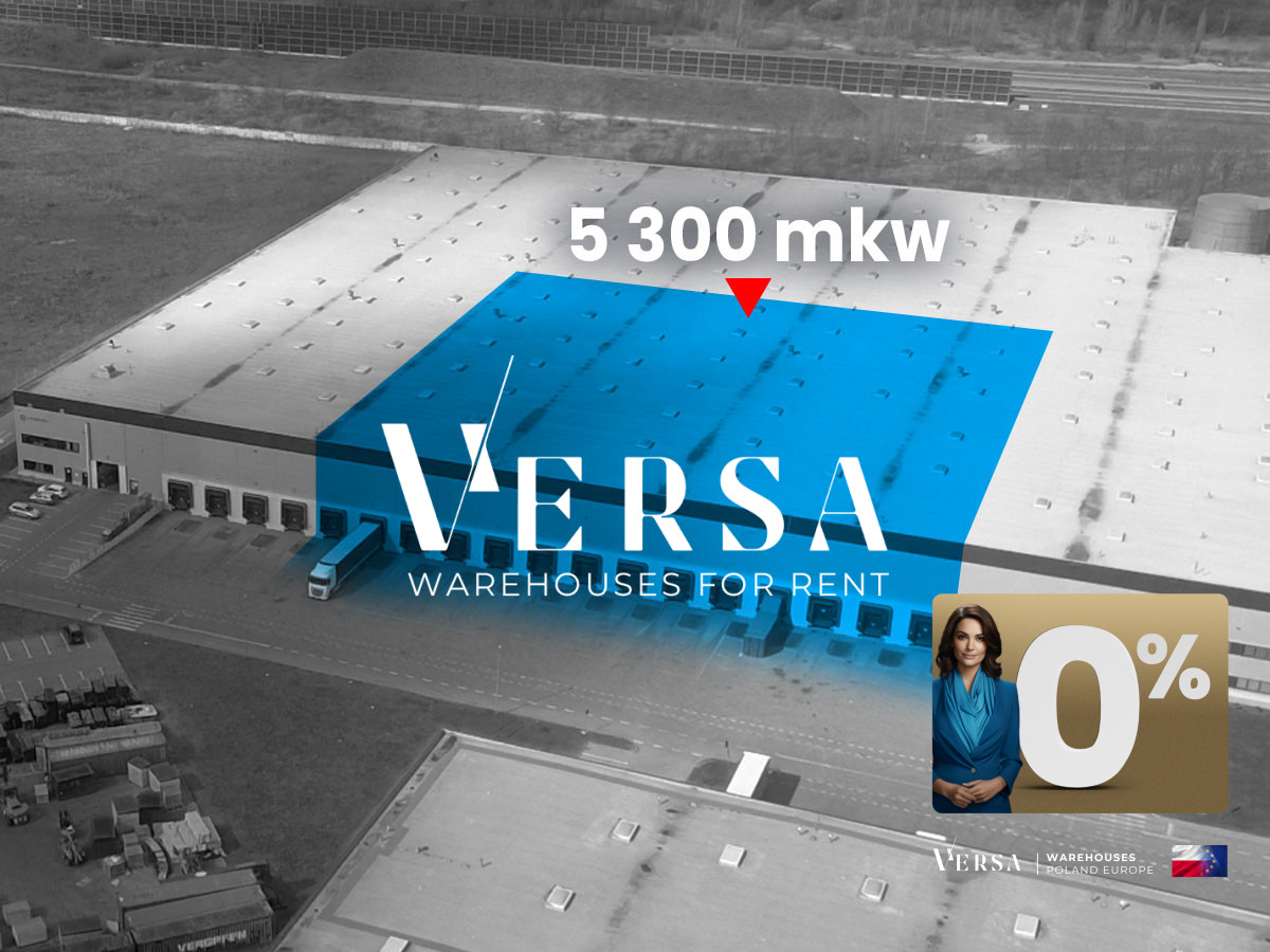 For rent a warehouse hall with an area of 5 300 sqm. S7 Nadma route junction. Parameters and equipment: height 12 m, mesh 12×24 m, floor load capacity 7 T/sq m, dust-free floor, sprinkler and fire safety systems, fire resistance above 4000 MJ/sq m; LED and natural lighting, 0 gates and docks with hydraulic ramps, possibility of adapting to production, offices and social facilities in rooms next to the warehouse; maneuvering areas and parking lots, access to the facility 24/7/365. Base rent rate for the warehouse 4,50 EUR/sq m, for office 12 EUR/sqm. Additionally payable: service fee and fees related to utility consumption. Possibility of taking advantage of attractive discounts and rebates for long-term lease. The warehouse available 1Q/26. The location directly at the S7 expressway, within the administrative boundaries of Warsaw, provides good access to qualified workers. The park is located in zone II of the Warsaw industrial market, providing easy access to the capital market.