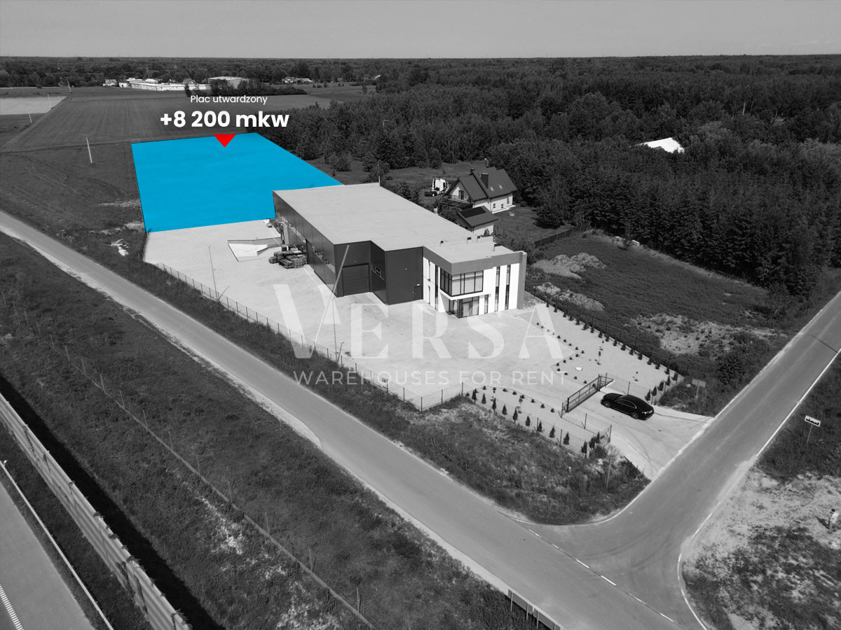 Możliwość utwardzenia całej działki zgodnie z potrzebami Najemcy. Czynsz najmu 35000 zł netto / miesięcznie plus koszty zużycia mediów. Możliwość zwiększenia powierzchni działki o 8200 mkw, za dodatkową opłatą 4 zł/mkw. Hala dostępna od zaraz.