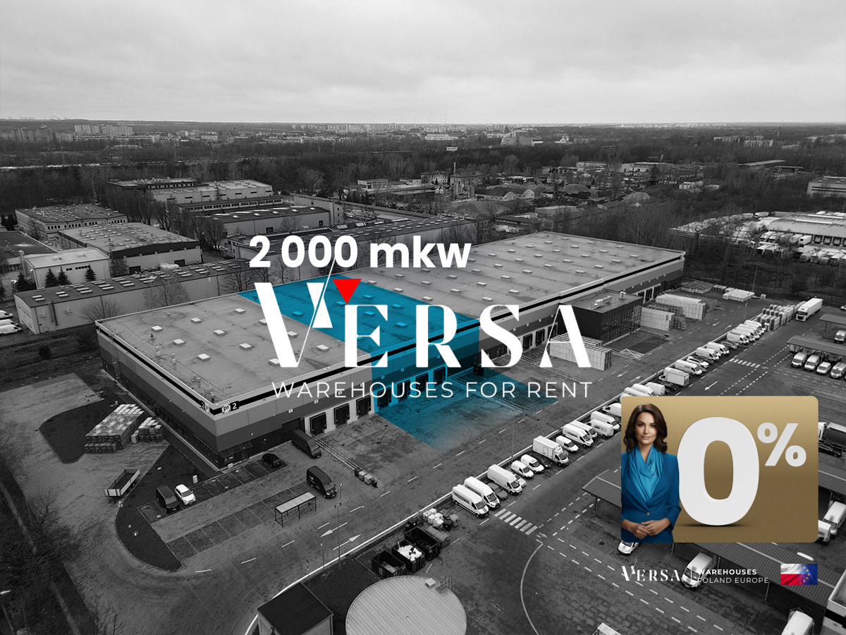 For rent a warehouse hall with an area of 2000 sq m with an office/social area of 60 sq m in a new warehouse complex in Białołęka. Access to the hall through 3 docks with hydraulic ramps (the height of the ramp can be adjusted to the height of the car floor) and one gate 0. The hall was made to order. Clear warehouse height: 10 m, Floor load capacity: 5 t/sq m, fire protection, LED lighting, 24-hour security, column grid 12 × 22.5, spacious maneuvering areas and parking lots, heating, possibility of renting additional office space. Base rent rates: EUR 5.5/m2 for the warehouse, EUR 12/m2 for the office/social space, service fee rate PLN 12/m2. Additional fees: electricity, heating. Possibility to use an attractive package of financial incentives for warehouse space and office and social space, reducing rent rates. The hall is ready to rent immediately.
