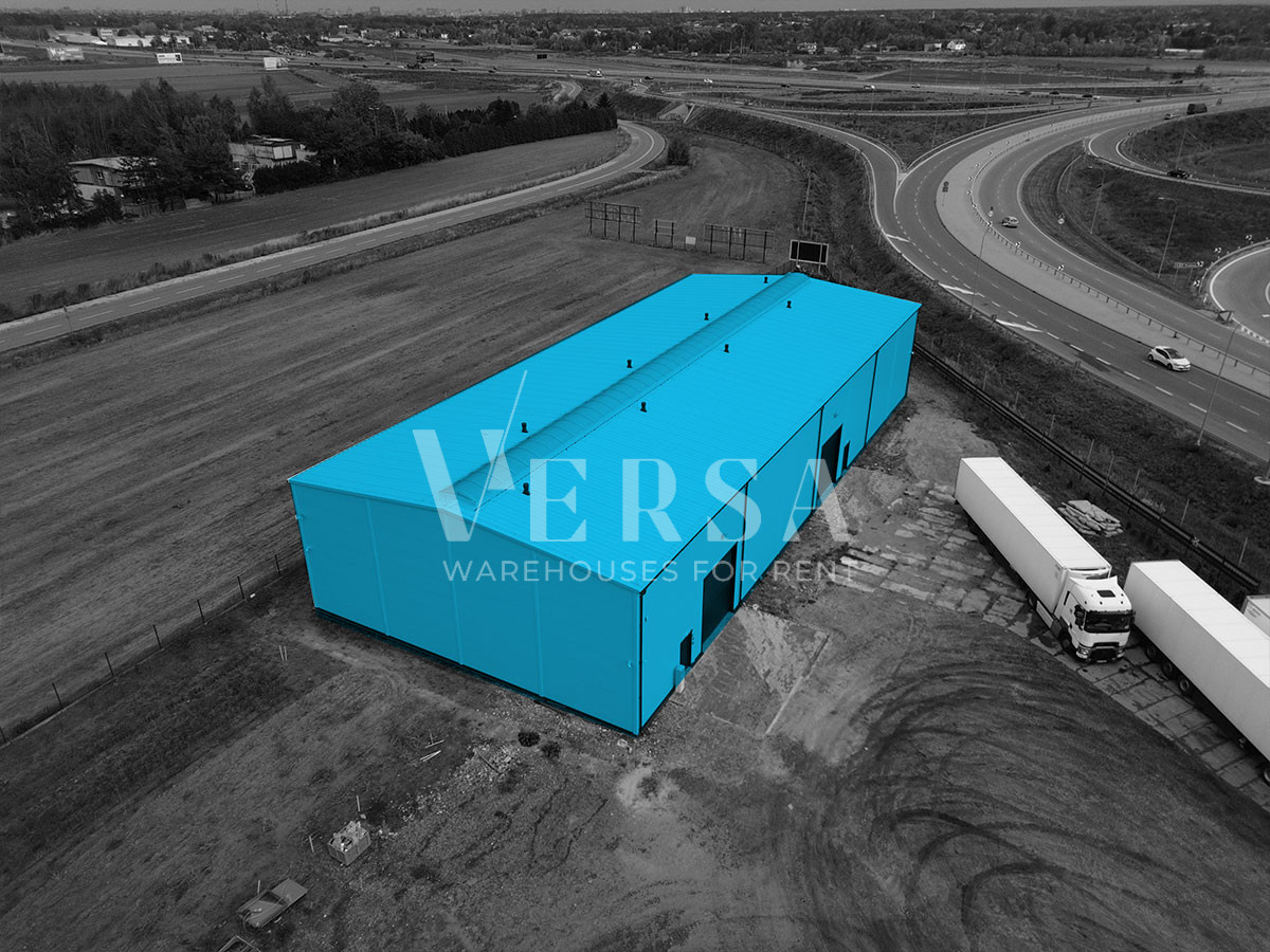 A 1,000 sq m standalone warehouse is available for rent near the S7 expressway. Office and staff space in the adjacent building (approximately 40 sq m) is also available for rent. The building was designed for company headquarters.