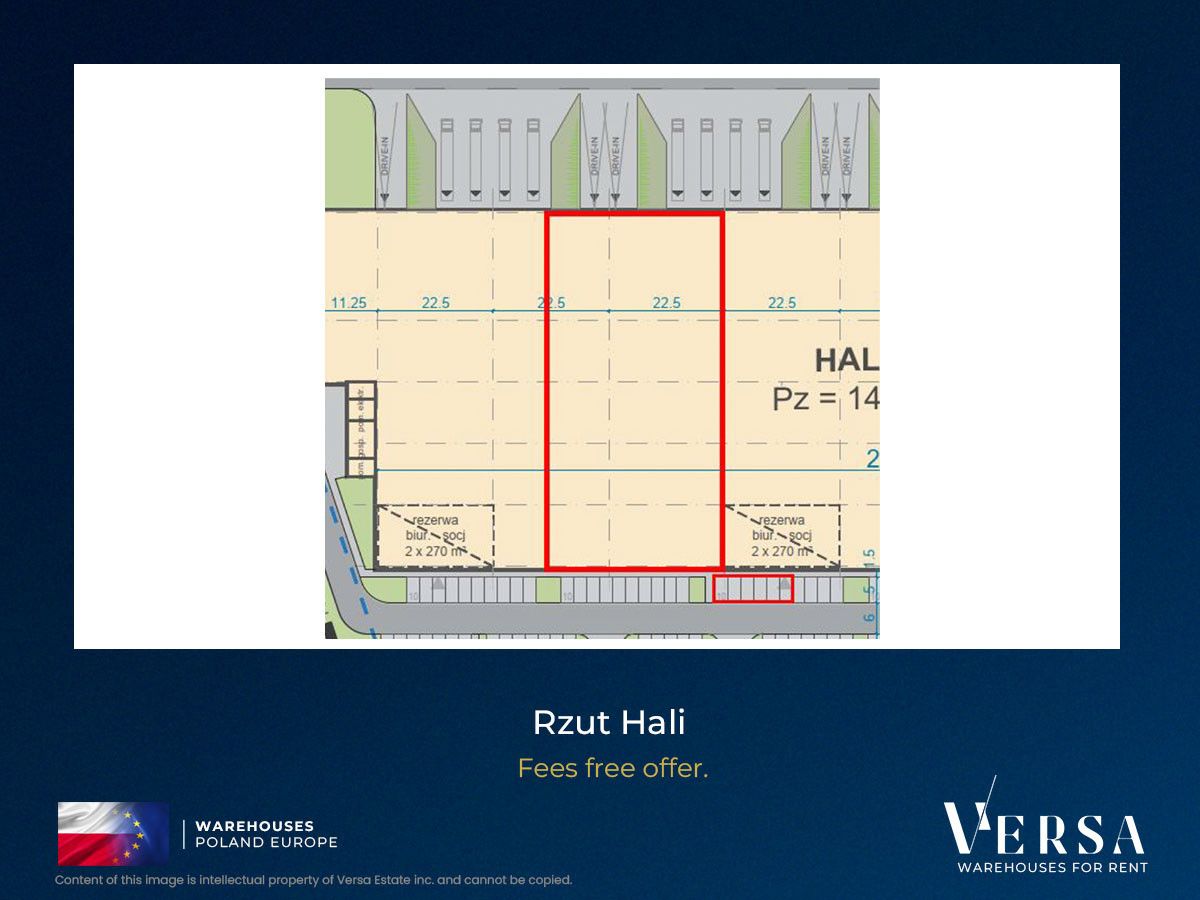 Rent rates: 7,5 EUR/sq m for warehouse space, 13,5 EUR/sq m for office space. A service charge of 9.1 PLN/sq m is added to the rent. The rental rate provided is a base rate and is always subject to individual negotiation. Our team will help you achieve the best financial terms.
